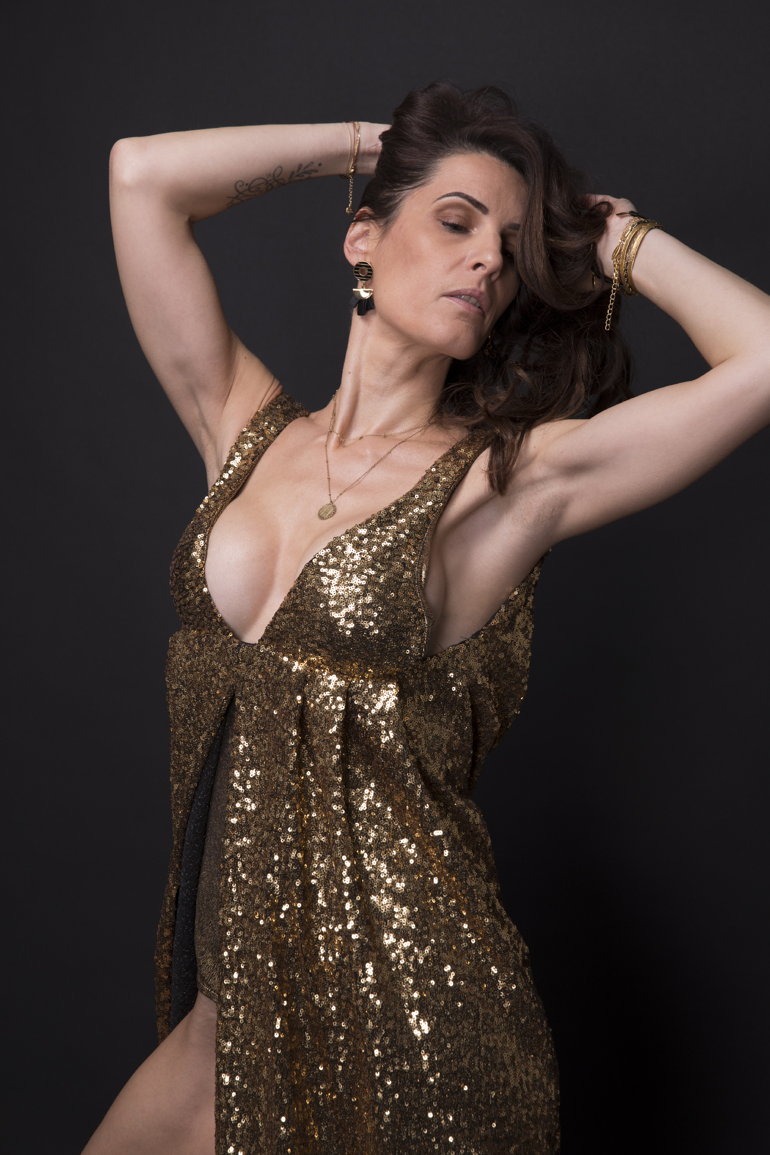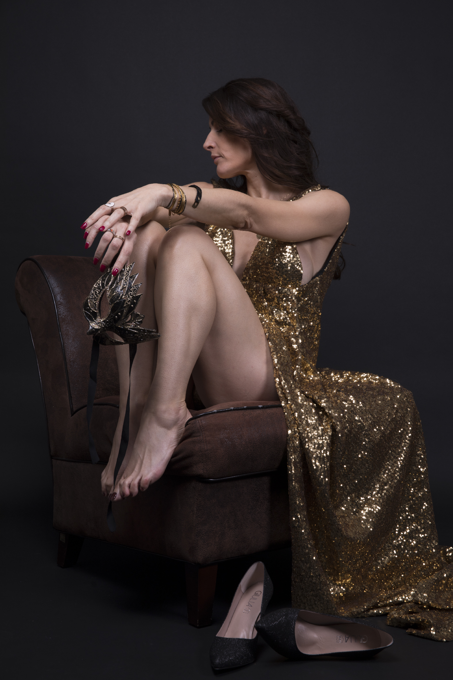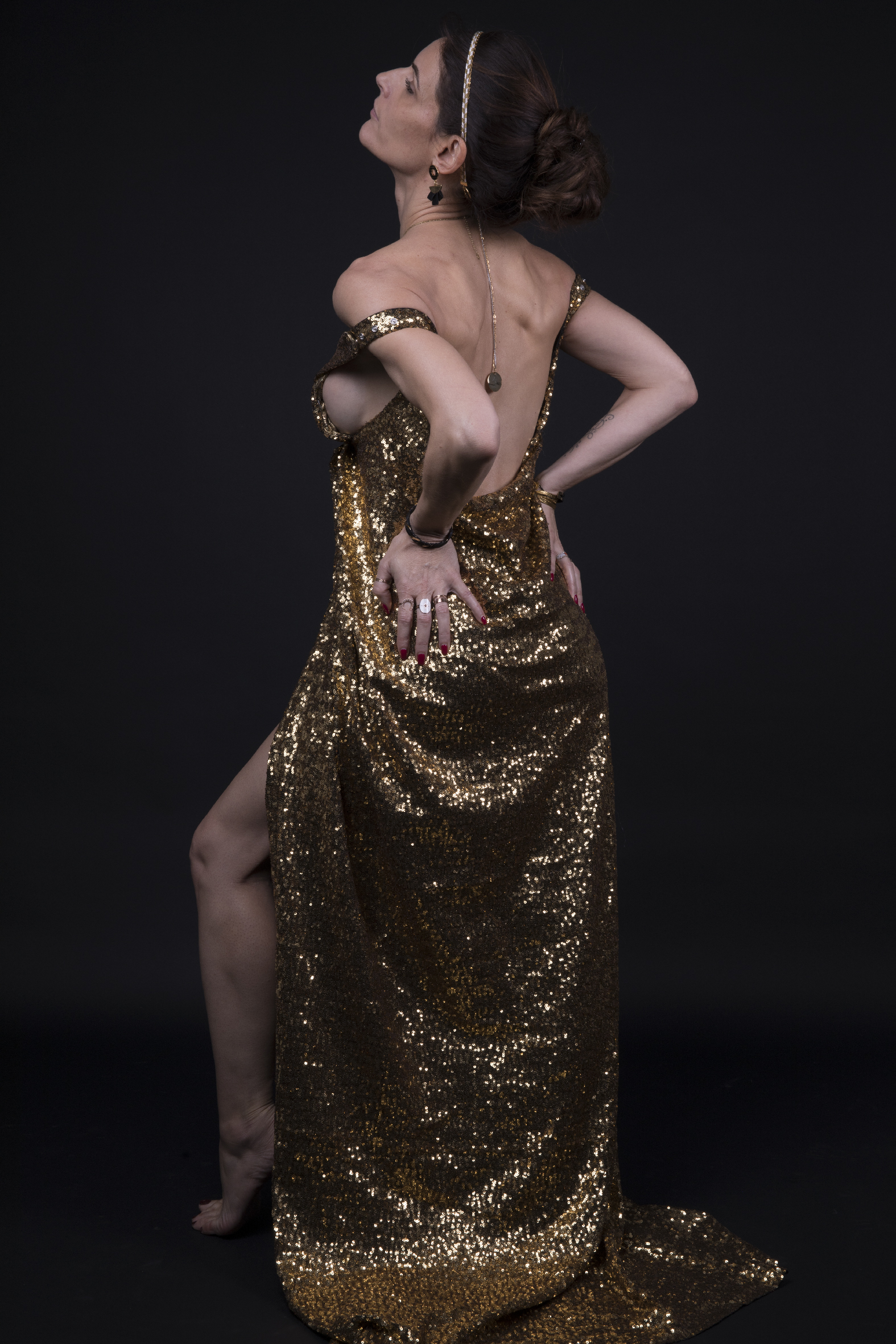 Avec la traîne perlée de sequins dorés et le décolleté de “Flashing Light”, vous ne passerez pas inaperçue !