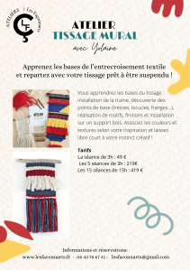 Retrouvez en image tous les infos concernant les ateliers de cartonnerie, broderie, tissage mural et couture !