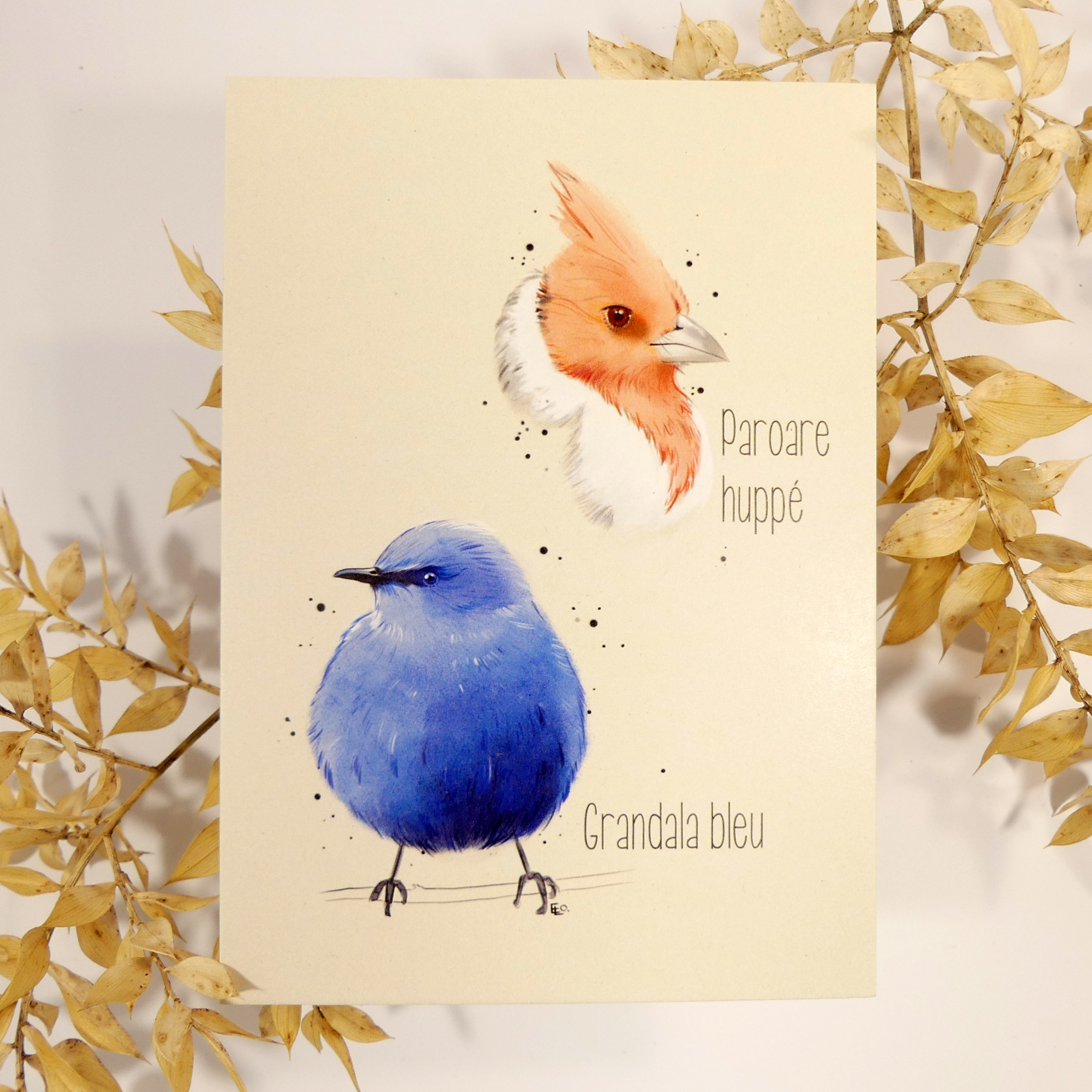 Souvent inspirée par la nature, j’aime travailler par série pour mes illustrations. Ici ce sont les oiseaux qui m’ont servi de modèles, avec leurs plumages délicats, colorés et nuancés, ce sont des sujets d’étude et de contemplation passionnants.