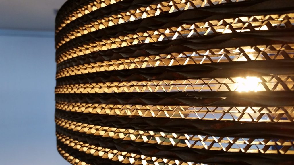 Suspension de forme cylindrique disponible en 3 taille: ~30 cm , ~40 cm, ~ 50 cm; peut être coloré ou couleur kraft ; câble et douille interchangeables.