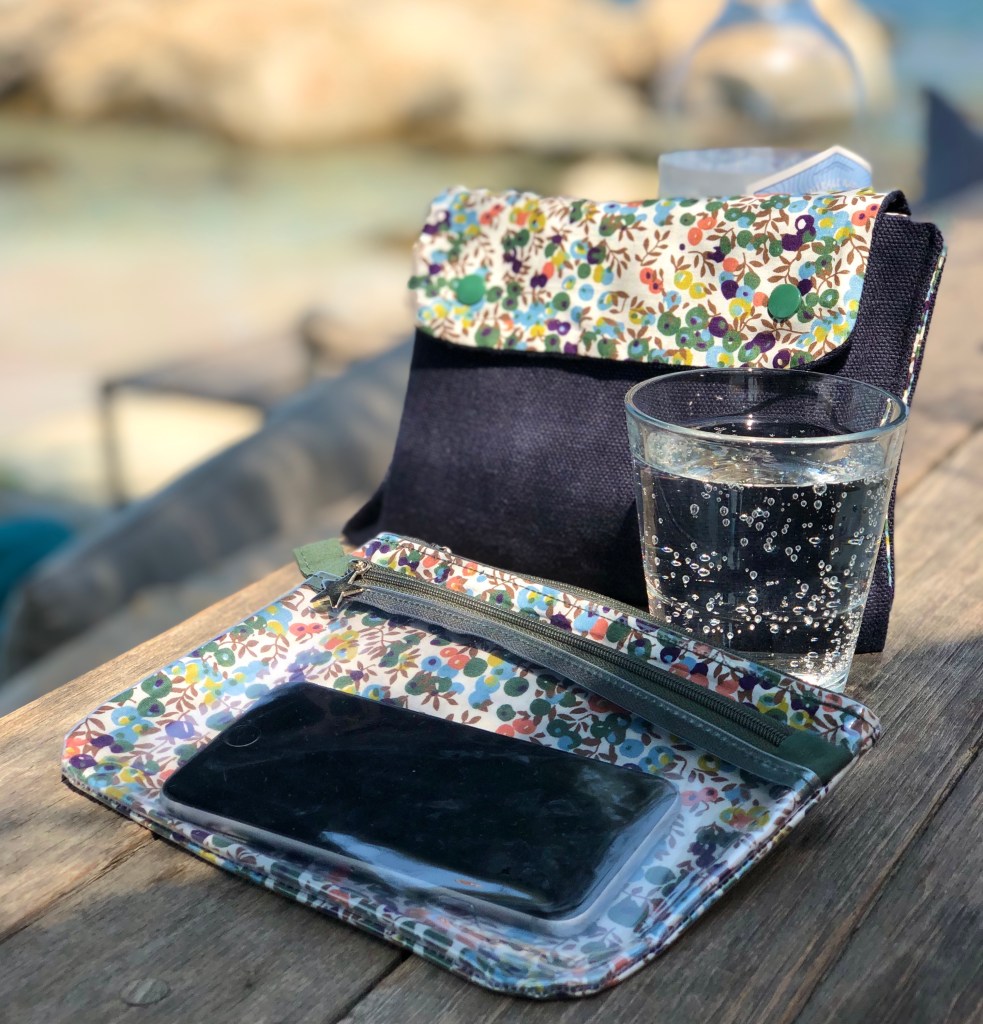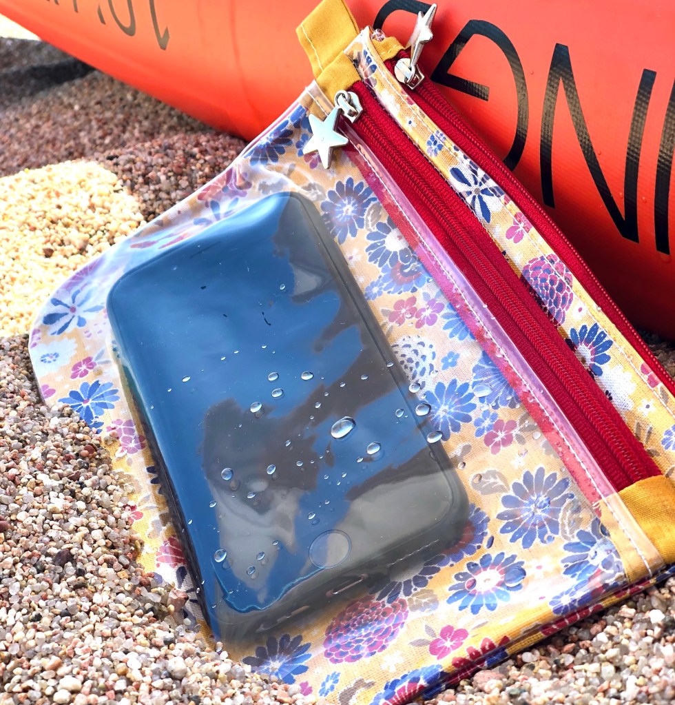 A la plage ou à la piscine, le téléphone est bien protégé dans la poche avant de la trousse tactile… Et on peut continuer à textoter au travers du PVC tactile. Il suffit de faire la démonstration pour être convaincue.