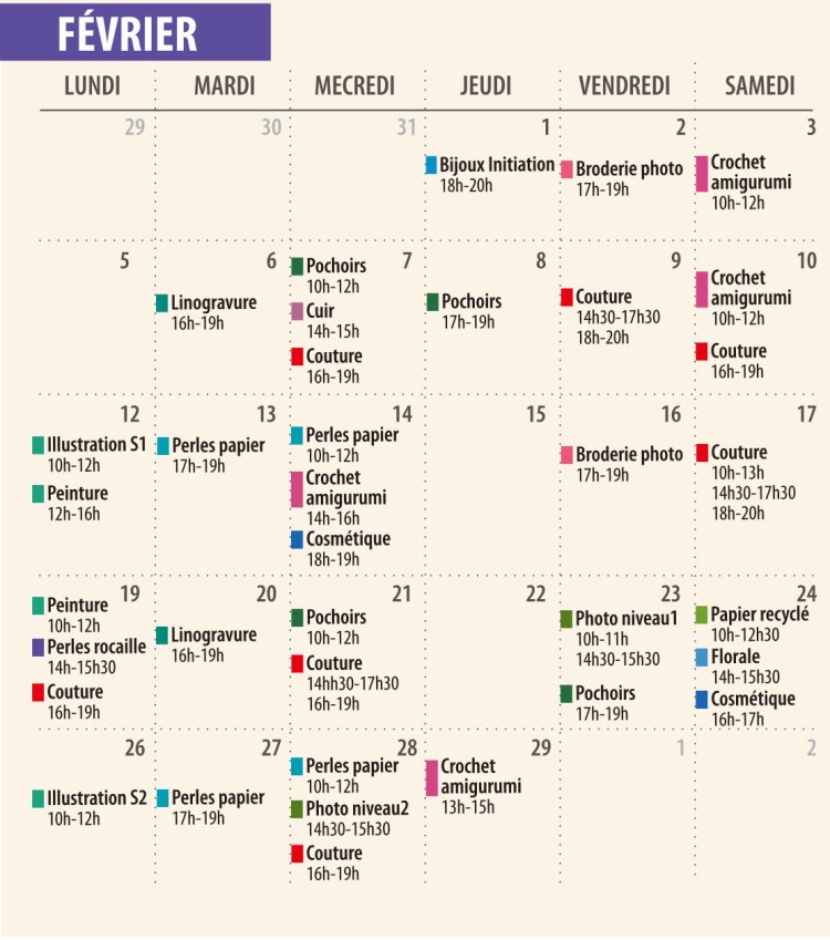 ATELIER | Mois de Février