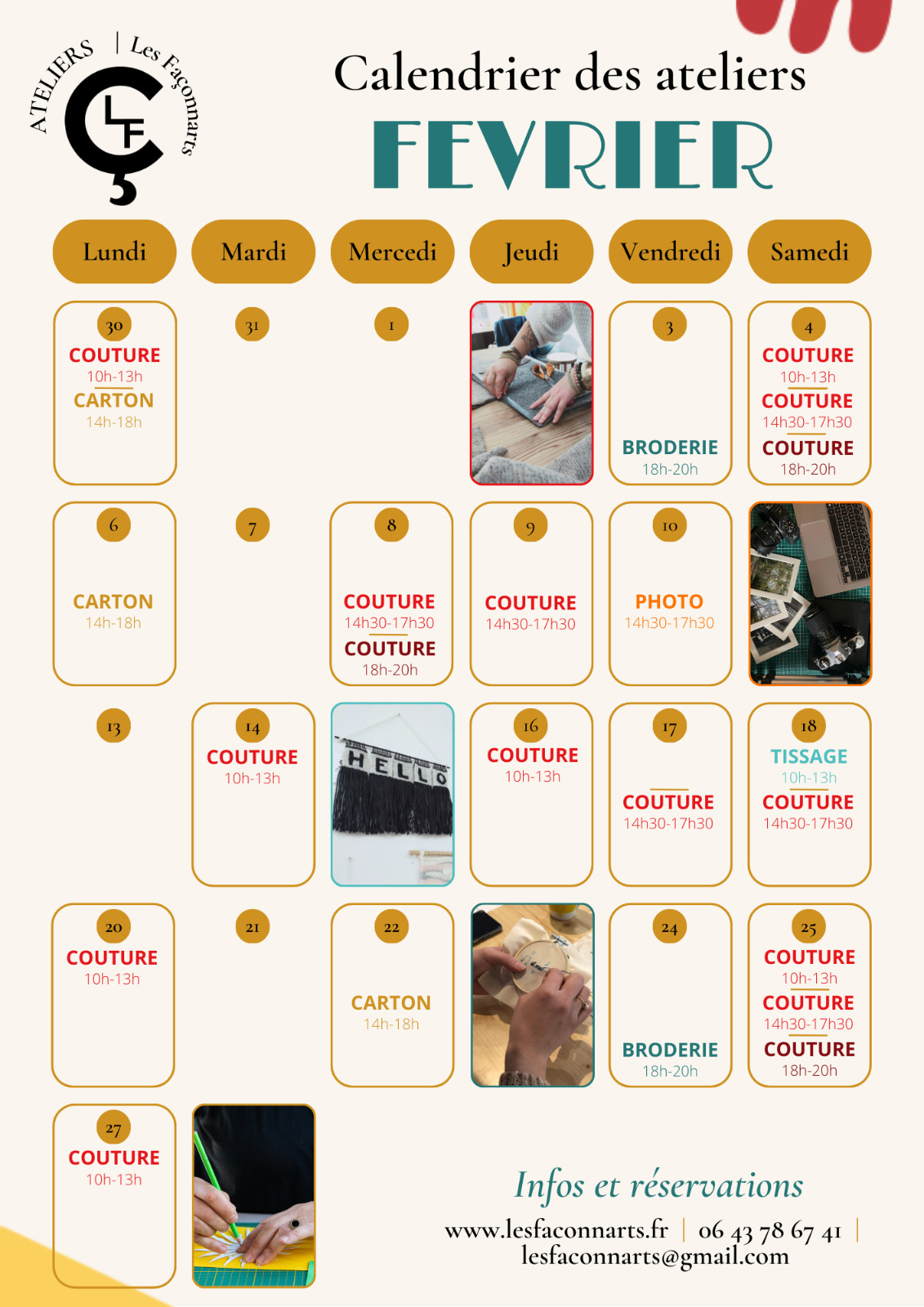 Photo, Couture, Broderie, Carton et Tissage, voici tous les ateliers proposés chez Les Façonnarts !